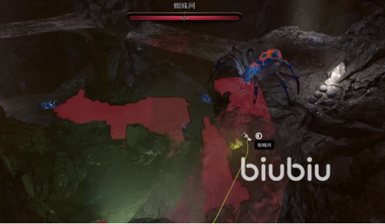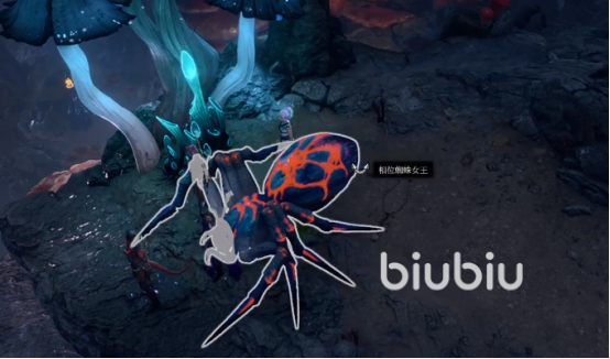 我们前往低语深地,会在路上发现一个巨大的蜘蛛,这就是我们此行的目标:蜘蛛女王。我们可以使用偷袭,潜行到蜘蛛女王的身后将它推到幽暗地域,然后去拿它身上的物品,也可以选择正面战斗,将它杀死,再进行搜刮。