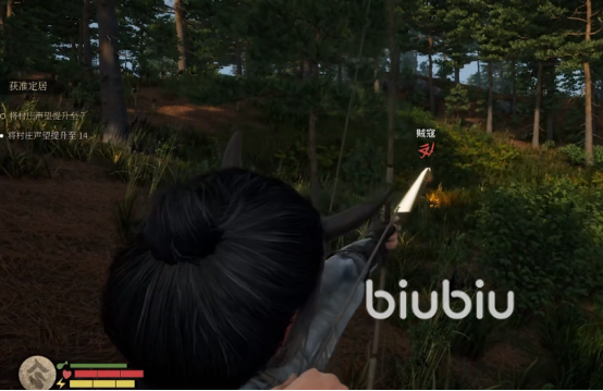 之后还是老样子,我们在击杀周围贼寇的路上,需要不断采集资源。弓箭和箭矢都可以在猎人小屋制造,需要的材料也很简单,只需要一些木材和石头就可以。我们如果在路上看到猎物,就可以使用弓箭将它们射杀。春天会遇到狐狸、梅花鹿等动物,射中时,它们会发出声音。一般大一点的动物需要射上3-4箭,如果小动物基本上一箭就无法移动,我们之后可以使用锤子、斧子将它击杀。在攻击猎物时,也会消耗耐久。