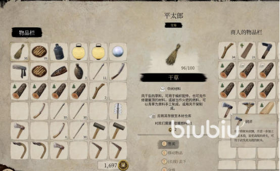 路上,我们可能会遇到贼寇,他们会攻击并且抢夺身上的钱财。我们可以使用弓箭先打他,然后在他靠近时,使用长毛进行反击。当我们将他打死后,可以搜刮他身上的物品,每个NPC身上带的东西都不一样,一般会有熟肉和酒,还会有一些武器。我们可以拿上带回村子。