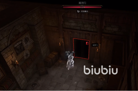 玩家们来到博德之口公报的门口,先隐身然后进行撬锁。进入后,再将里面的升降机门撬开,我们就可以来到博德之口的地下室。这里有两个高大的守卫正在巡视,注意不要解除隐身,进入最里面将木门打开。