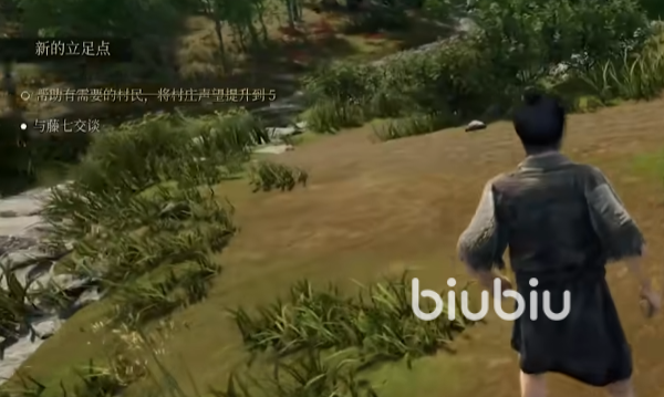 当阿子被成功邀请后,我们需要通过帮助有需要的村民,将村庄声望提升到五。声望达到五之后,我们需要找藤七交谈,往检校身后的小道方向前进,期间可以收集一些石头或者芒草。穿过森林后会来到一道小溪处,这里选择顺着小溪逆流的方向继续向前进,等到了断桥处就向右边继续往主干道顺着走。
