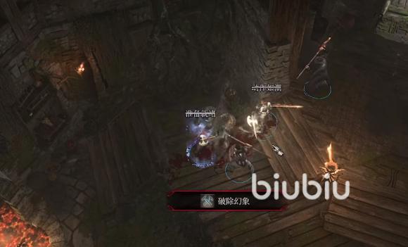 房间里面是有四个小兵的,进去之后击杀掉就可以安全的进行下面的操作。将掉落的装备捡起来进行投掷,就可以把毒气口堵上,然后使用羽落术跳到安全的平台上,看到鬼婆之后把她推下去,再从后门找到传送点就可以进入地下室了。