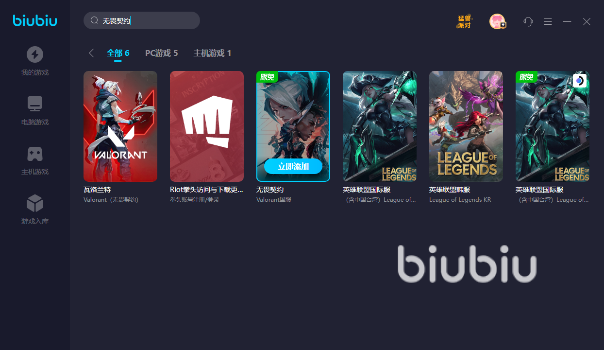 像大家玩的一些大型游戏,难免会遇到卡顿、比流畅的现象,这很正常。一般的家庭网络达不到要求,因此就用到Biubiu加速器,它可以对无畏契约进行加速。而且Biubiu加速稳定流畅,隋开随用。使用该软件时,只需搜索并选择与自己版本相匹配的无畏契约,点击进入即可直接加速,并能实时反馈加速状况。