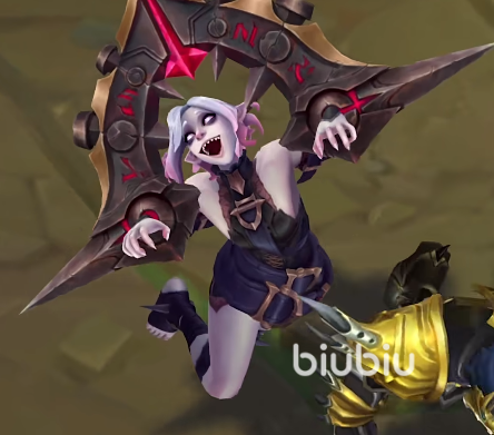 她有着恐怖的进场能力,R技能在短暂延迟后会直接飞向敌人,也许你会想到薇古丝的大招,虽然两者看起来一样,但她的进场无法手动取消,这意味着你一旦有了错误的判断将直接白给一波。W会进入狂热状态自动追击敌方的敌人,而Q是一段小突进,E有一个击退效果但会解除自己的狂暴,这是一个高吸血高攻速的后期角色,在装备成型后可能格温都无法威胁到她,但前期缺少对线能力所以只能进野区,具体实用性如何还得看正式服以及之后的赛场表现。