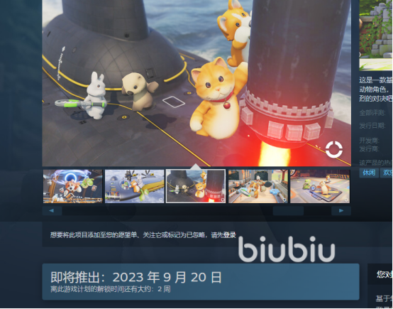 首先,在看到玩家们的留言后,小编立刻就登上steam平台看了下,游戏介绍界面有一行文字表示将在9月20日,也就是本月的星期三正式推出动物派对。所以小伙伴们不要着急,差不多还有两周左右,就可以开启派对狂欢了。