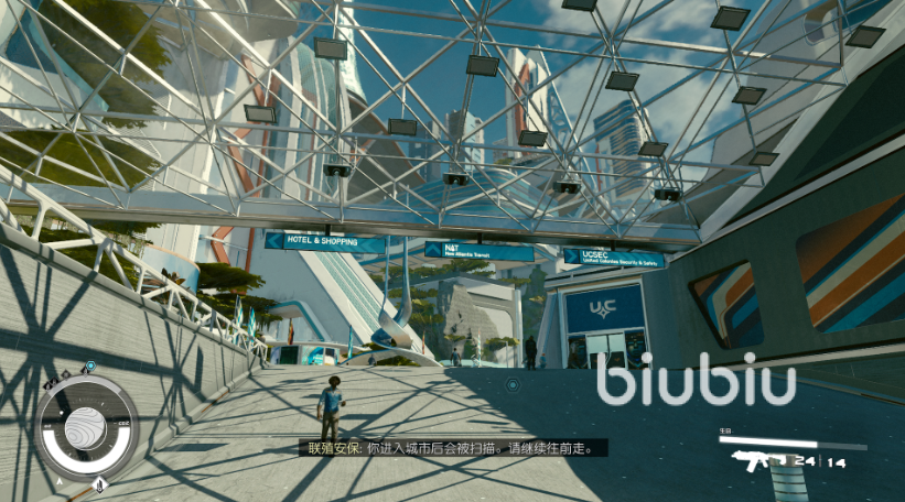 之后你会进入新亚特兰蒂斯城这个繁华的地方,这是玩家最主要的据点你可以看到整个地区交通便利,守备森严并且设施也是十分齐全,玩家可以去联殖配送买到各种材料包括稀有矿石之类的东西,能去武器店购买和改装最新的枪支以及子弹。另外你还可以去高定服装店购买奢侈品服装,你可以在里面购买喜欢的款式让你穿着更拉风一点。