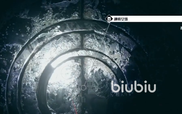 当看到一个黑色的建筑物时,那就是神殿的位置,到达目的地后会看到一个圆圈的开关,我们按E开启开关便会进入到神殿内部。从一个通道进去后会发现这里是一片未知领域,在中央位置会浮起几个金铜色的圆圈,并且这些圆圈会自动的动起来不停地旋转。