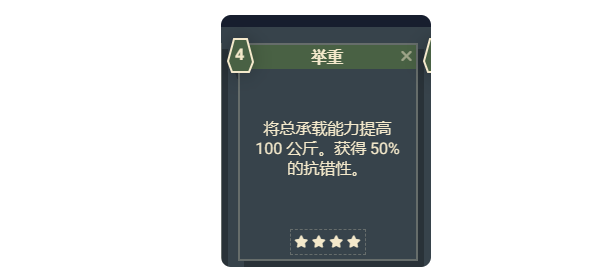 其二就是举重这个依然要点满,不然你的背包根本就装不下,前期缺资源什么东西都需要捡,另外身上武器和装备也占重量,所以这无疑也是必点天赋,有了它你就不用频繁的去跑商店和船舱了来贩卖或存放了。