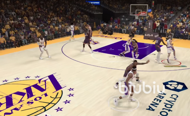 而在本作当中,上篮时机是默认开启的,并给动作也重新设计了,在篮框处得分是更加轻松的。等到练习熟悉了,在人群中都可以进行花式上篮,并且搭配抛投以及勺型上篮都是很轻松的,毕竟难度降低了不少。