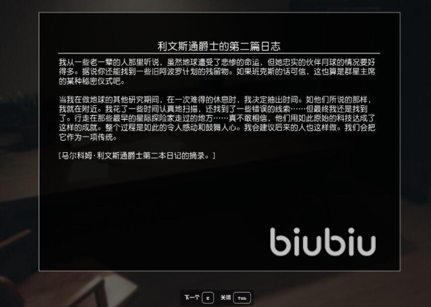 玩家在陋室房间的桌子上可以找到一篇利文斯通爵士的第二篇日志,拿到之后就能触发该任务,玩家追踪任务之后会让你跃迁到月球的坐标上阿波罗着陆点,这里可以看到当时的登月舱遗址,然后任务就完成了。基本上这就是一个小小的彩蛋性支线,没有什么实质性的内容,你还可以到处转转找找别的风景。