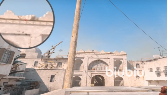 玩家们在投掷炸弹等道具时,可以有许多的操作空间和有趣玩法。比如卡在匪家平台的箱子前蹲下,然后瞄准面前的二楼房子,对着房子顶端的围栏交界处,直接蹲下进行跳投,烟雾弹会经过多次的跳转,来到CT方的B出口,阻挡敌人进攻的同时,也能为己方冲过去的队友提供转点和进攻的契机。游戏中,有很多这样的操作,玩家们可以在训练场进行尝试,然后切换视角去观察烟雾弹最终到达的地方,这样就可以直观了解投掷物的运动轨迹和落点了。