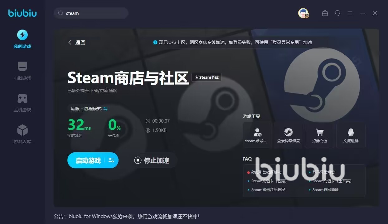 在游戏的过程中,它不仅能做到对单个游戏的加速,同时在运行时也同样对Steam生效,而除了在下载时提速500%外,对于局内的游戏效果也是立竿见影的,让玩家彻底和闪退黑屏卡顿等现在说“再见”。现在新人更是可以享受3天的免费会员加速时间。