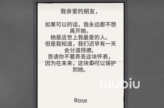 游戏中一直出现的这个金色怀表,它上面的图案其实是一种梵文,有保护劳拉的能力。而想要抢走怀表的人,有可能就是雅各布的父亲尼古拉斯。最后哈维和劳拉来到锈湖,见到了两个时期的玫瑰,年轻的应该是劳拉和玫瑰之间的记忆羁绊的形象,而年迈的则是现实中玫瑰的灵魂。关于母亲的一切,在两人重逢时就都释然了。