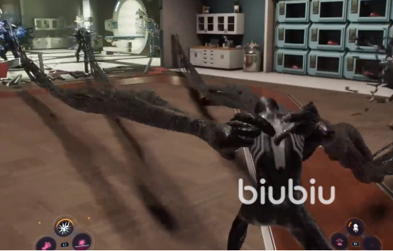 在此基础上,游戏增加了全新的主动能力,在使用了主动能力之后,会有一定的cd时间,等待冷却完毕才能再次使用。而这个设定也不再是迈尔斯一人独有,彼得也增加了新能力:机械臂和共生体。和战斗装置类似,玩家可以将其调整为当前装备的主动技能,对应四个键位最多四个。这就意味着玩家最多可以同时装备和使用8种攻击技能。