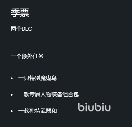 首先来看黄金版,包含了游戏本体,附送了季票,季票的内容有2个额外的DLC,同时还有额外的任务以及一只坐骑、一份装备组合包和一把武器。