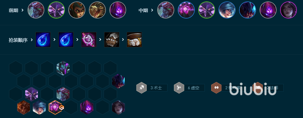 第一个阵容:【虚空34术】6虚空3术士2法师