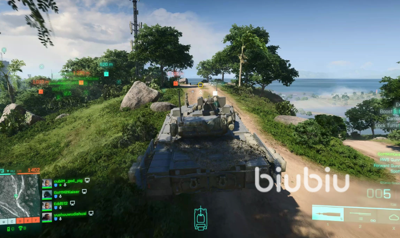 而在地面开坦克的话虽然有着强大的火力,但同时也是被集火的首要目标,当载具被摧毁需要等待好几分钟才能重新使用,而这期间缺少了主战坦克整个队伍会处在节节败退的阶段,若是不想背锅你可以上别人坦克使用乘员位的机枪来不停的扫射,有很大一批这样蹭别人局势的玩家,专门上别人载具玩机枪。