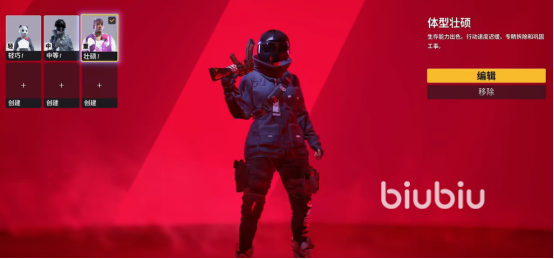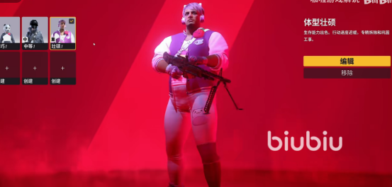 游戏内总共有三种体态的人物可以选择,每个形态人物可搭配的初始武器和刀类武器都是固定的,350血量的为壮硕型人物,初始装备为重机枪,刀类武器为大锤;150血量的为轻巧型人物,初始装备为冲锋枪,刀类武器为长剑;250血量的为中等型人物,初始装备为步枪类,刀类武器为匕首。