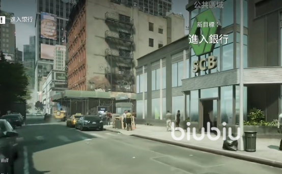 在进入游戏之前,我们会在地图界面看到哪些地图可以强袭,哪些可以潜入,选择可以潜入的地图开始游戏。这里以恶者不息的单人困难模式为例,带大家了解下如何潜入作案。我们进入游戏后会显示目标,一般会在左上角显示出来,我们一开始需要进入银行,操作角色进入后,一直往银行内部走,然后靠近安保大门,会显示新的要求,我们需要使用开锁技能打开这扇保安门,需要注意一旦打开这扇门后,里面就会有很多巡逻的安保人员了,记得躲避。