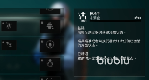 这组技能的基底牌是神枪手,它的设定是当我们切换至副武器的时候,人物角色便会自动获取到冷酷的状态,而当我们的瞄具进行瞄准和切换武器时,也会自动终止这个状态。