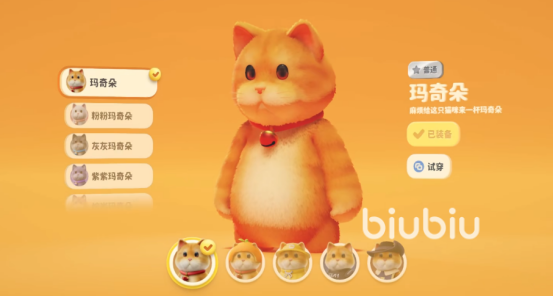 接下来是玛奇朵,一只可爱且充满激情的大橘。玛奇朵是尼莫的好朋友,她是派对的灵感和创意来源。玛奇朵对生活充满了热情,她总是乐观向上,无论遇到什么困难都能够找到对应的解决办法。她的乐观和积极向上的态度不仅影响了尼莫,也感染了其他动物,使大家都能够享受到派对的快乐。她也有5个形象,分别是粉粉、灰灰、蓝蓝、紫紫和熔岩。皮肤有4个,分别是香橙、雨衣、武装和剑客。