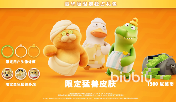 总的来说,购买《猛兽派对》这款游戏的豪华版本不仅可以获得独有的猫咪、呆鹅和鳄鱼的三款皮肤和外框,还能获得限定的金色外观三个,另外尼莫币的数量也是相当的多。所以如果有心动的小伙伴不要犹豫,快去购买这款游戏,这样等正式发售的时候就可以跟别人与众不同了哦。