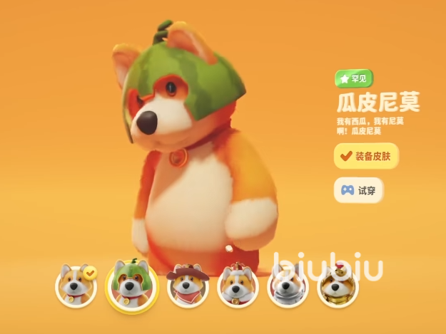第一个是尼莫,这是一只小柯基,全身都是软萌的黄色毛毛,和真实世界的小柯基一样,是个小短腿,它的皮肤有瓜皮尼莫,牛仔尼莫,皇家尼莫,太空尼莫和黄金士尼莫。
