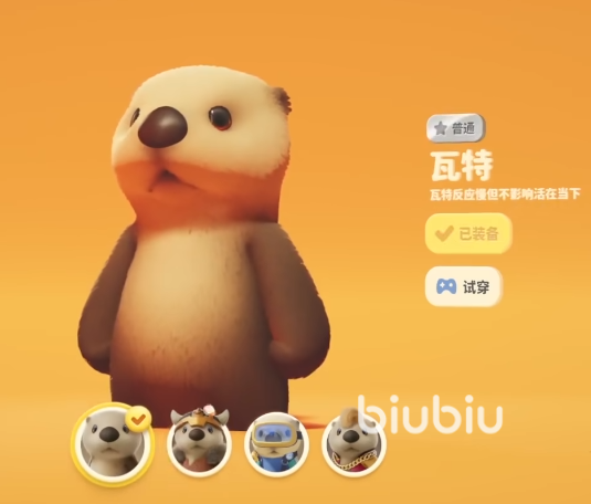 第六个是瓦特,这是一只小水獭,呆呆萌萌的水獭看起来非常可爱。虽然它的反应慢,但却丝毫不影响玩家对这个角色的喜爱。它的皮肤有维京瓦特,潜水瓦特,黑脚党瓦特。