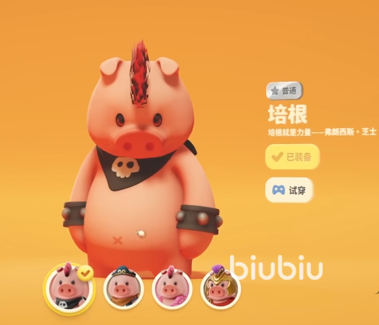 第八个是培根,这是一只猪,但它的名字却叫做培根,属实有点过分了,哈哈。不过这只猪看起来好暴力的样子。它的皮肤有八戒培根,草裙培根,斯巴根。