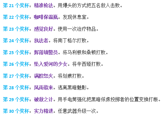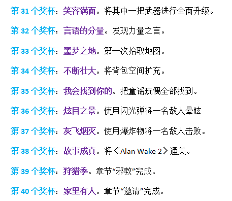 第21个到第23个奖杯需要在规定的任务场景中完成相应动作,比如坐下来喝杯茶,也是比较简单的。第24个到第27个奖杯全部都是打败任务npc,这个需要玩家有一定的操作,不过就算失败了也没关系,可以再来一次。第28个到第35个奖杯开始会渐渐增加难度,需要找出任务场景中的隐藏npc,根据相应提示完成与它的互动。第36、37个奖杯最简单,只要打败任意敌人就可以了。