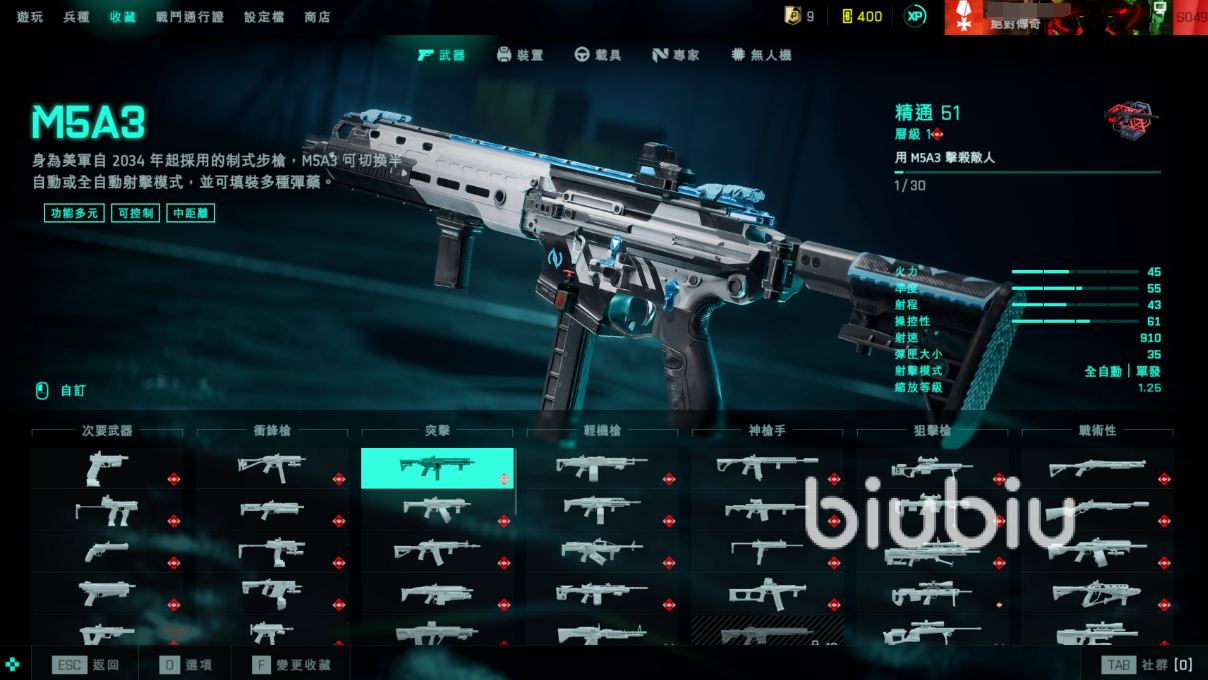 除了m44手枪以外,也有很多其他好用的枪可以搭配着一起使用。首先就是M5A3,萌新万金油最均衡的武器。无论TTK、射程、后坐都处于一个中间段很舒服的位置,对新手极其友好,上手难度低。首推配件方面,推荐红点加长弹匣,轻型握把和短管,额外可以配备TR-1热成像1.25倍镜。