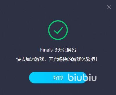 biubiu加速器拥有多条电竞级别得专线,它可以提供稳定的加速,杜绝延迟高、丢包、掉帧等问题,如今新人还能免费得到72小时的全平台会员加速。另外,在biubiu客户端内输入“ finals ”即可兑换3天会员时长,该活动将随着游戏的测试时间持续到11月5日。