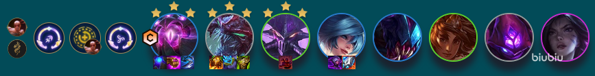 虚空34术:6个虚空3个术士2个法师,阵容是大眼、大虫子、卡萨丁、琴女、雷克塞、卡莎塔莉娅、玛尔扎哈。主C是大眼,如果能选奥恩神器,那就选魔宗给琴女。然后给大眼蓝buff和法爆,给大虫子出个离子火花然后出肉,卡萨丁给窃贼手套。比较适合大经济的阵容,能吃多少分就看三星的程度。
