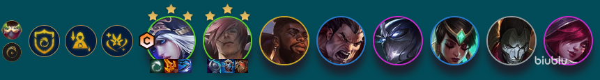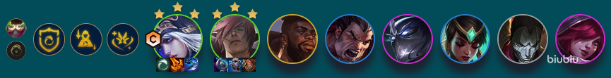 司令德玛卡莎:3个德玛西亚3个比尔吉沃特,阵容是卡莎、泰坦、剑姬、女枪、皇子、狗头、船长和奎因。主C是卡莎,给卡莎青龙刀、法爆和吸血枪。给泰坦肉,给剑姬泰坦的坚决和饮血剑,多余的给女枪装备。这套阵容基本没什么天克阵容,一般都能玩。