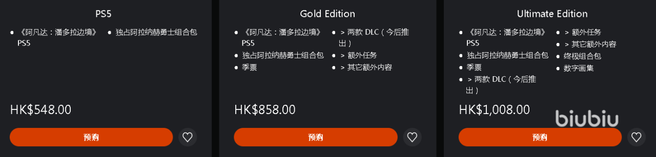 而如果你在主机上买,给的东西倒是一样,但是价格却更高了,分别为普通版548港币,黄金版858港币,而终极版达到了1008港币,是育碧历史上最贵的买断制游戏。不过在主机上玩你可以接电视屏幕,更大的画面尺寸令人沉浸感十足。