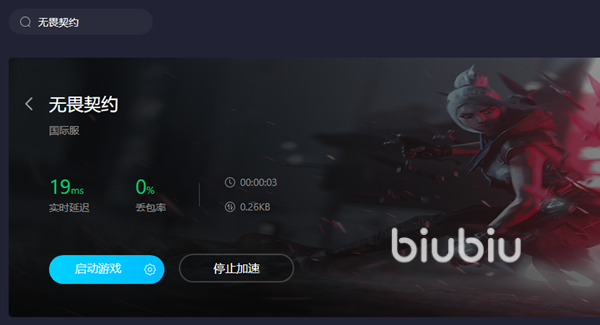 这款平台的加速效果在业界可以说是有口皆碑,而且还能够拿出数据来说话。软件的使用方法颇为便捷,搜索游戏直接点击加速选择游玩的区服即可,剩下的一切都有biubiu来帮你搞定,如果在游玩的过程中遇到节点拥堵,还可以自动进行后台切换,不会对游玩造成影响。使用biubiu给无畏契约国际服进行加速可以获得稳定20ms以下的ping值水平,让大家能够获取到媲美国服游戏的延迟环境,从而更快一步精准命中敌人。