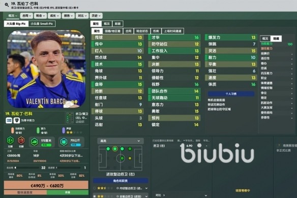 第一位要说的就是致力于博卡俱乐部的瓦伦丁·巴科,他擅长的位置是左边后卫、左边翼卫、左边前卫、左边锋、中场,售价在1千万以内。因为游戏的潜力值都会不断的变动,所以价格也是会上下有些波动,开档年纪是18岁,能力足够强且价格也就几百万。