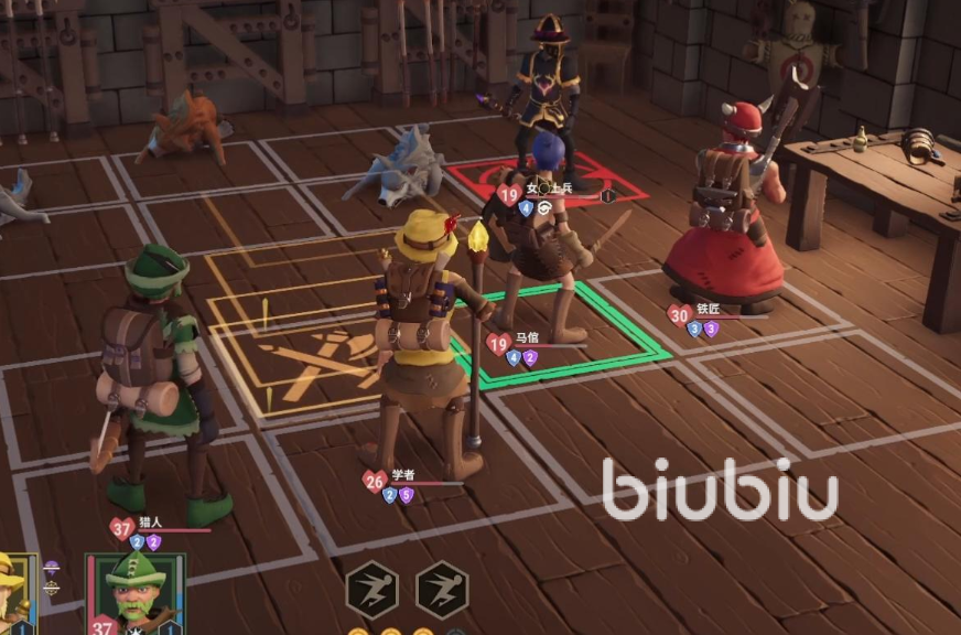 铁匠的技能叫做固若金汤,装备盾牌时有一定概率抵抗伤害,这也是其成为主T的根本。学者有两个技能,分别是凝神专注和寻找卷轴,第一个意思就是在回合结束时有几率恢复一点专注,第二个的话就是有几率获得卷轴一份。马倌的技能叫做辛勤工作,在战斗中消耗完最后一点专注值后,可以获得一次主要行动,这个设定也是其成为主C的原因。炼金术士有烟雾逃跑和制作药水两个技能,第一个技能负责逃跑,第二个技能随机获得药水和手雷。