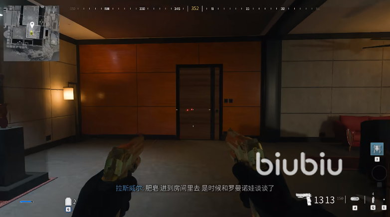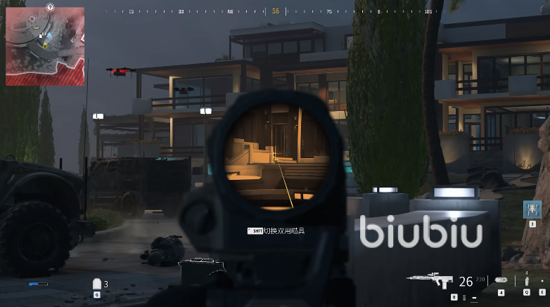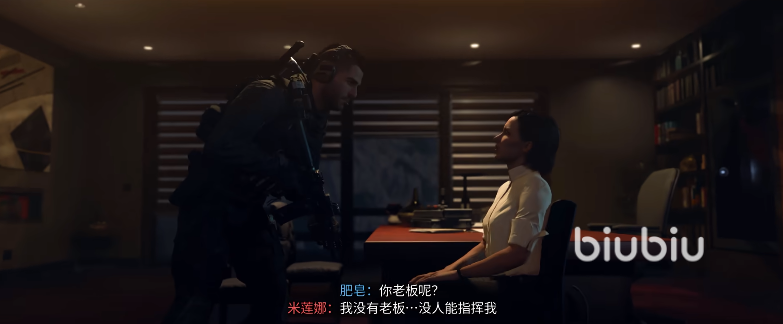 别墅窗口也有狙击手,附近也有数个士兵,不过在剧情模式下敌人强度都比较拉胯,直接击杀就行。再往后会刷出几个攻击无人机,击毁之后进别墅把敌人清空到上层的房间开门就算完成任务了,玩家会与NPC米莲娜开始对峙。