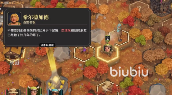 我们首先来到第一章会出生在灰港,而左上角会出现酒馆老板希尔德加德的委托,我们前往秋日森林的普兰就可以找到她。我们先跟着主线往右边找到酒馆老板,路上会遇到各种简单的小怪,比如扒手,地精打手等等,让我们了解战斗的机制。如果遇到专注圣坛的话,可以让法师或者奶妈回复一定的专注值。