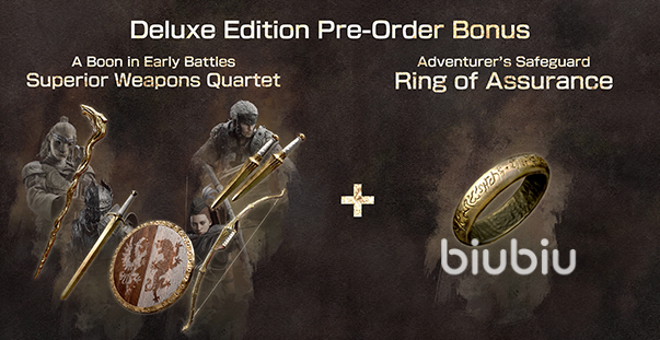 言归正传,预购标准版的玩家可以获得游戏本体以及金色权杖、剑盾组合、弓箭、双手剑四把特定的武器,而豪华版则会在前面的基础上再额外增加一个戒指,并且豪华版本身还会带有逃狱钥匙、变身秘术、露营用品、龙族声音的套组、狼烟、宠爱坠饰、1500点数的异界石等好礼相送。