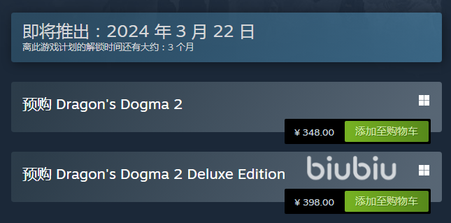 这里就以PC端为例,它发售有348和398两个版本,上线时间为2024年3月22日,目前喜欢的玩家可以将它添加至自己的愿望清单里,这样后续的消息就可以通过邮箱知道了。