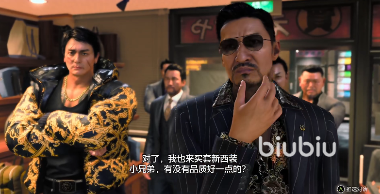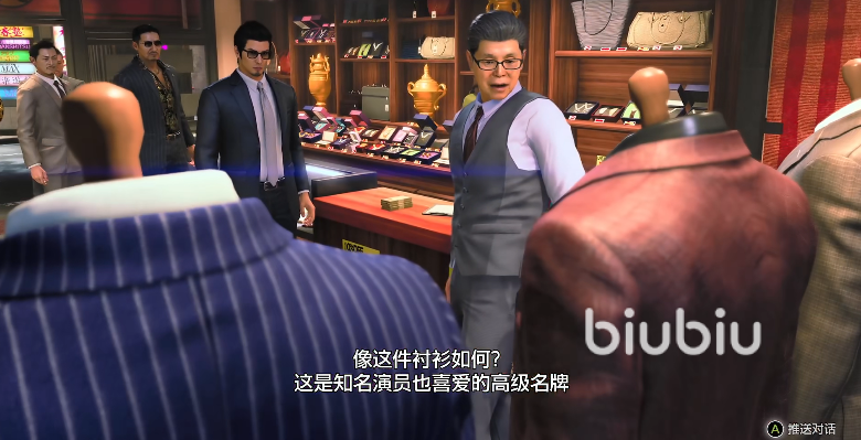 玩家的第一个场景必然是夜店,并且在剧情中你还请在坐的所有顾客喝酒,之后就是自由控制时间了,玩家需要逛完所有指定地点,顺序和路线设计由你自己来规划,其中有一个地方就是卖高档奢侈品的店,你在里面和鹤野买了一套西服和各种值钱的东西,把老板吓得瑟瑟发抖,这个场景结束以后就会弹出获得正式西装的字样。