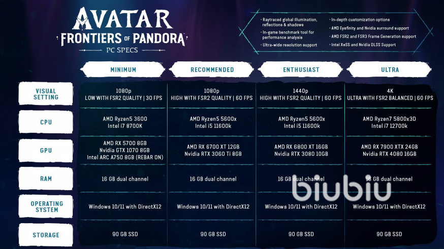 2023年12月04日 15:58 来源:箭雨宇铁甲暴龙玩游戏的第一步无疑是需要安装客户端,如今3A作品的体量越来越大,很多朋友在入坑之前也要先预留好硬盘空间。有人问阿凡达潘多拉边境多少g,这部作品眼看终于要发售了,在这之前先跟小编的文章做个简单的了解,看看这款压轴的旗舰级游戏到底会有多大的容量。