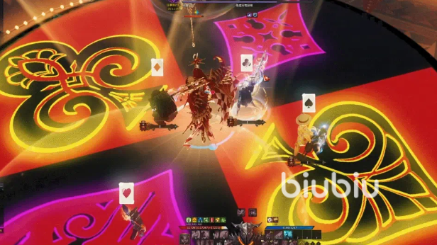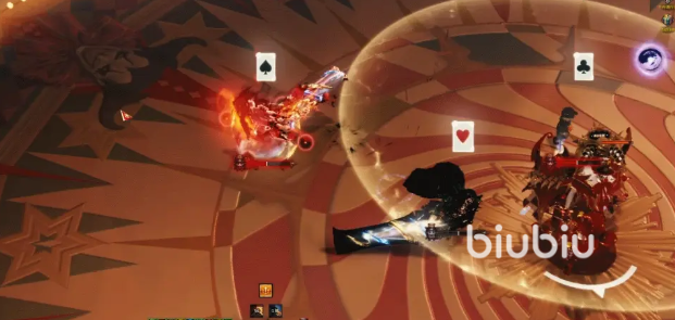 无死角发牌:敌人头顶会有卡牌盘旋然后会向四周360°方向密集攻击,这伤害比较高所以要尽力躲开。