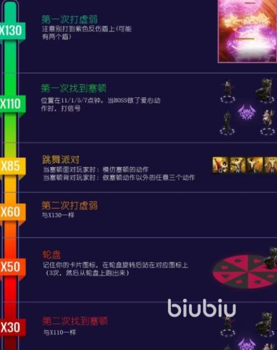 召唤:跳舞之后出现黄圈造成伤害的同时,并在周围召唤出士兵,大家需要尽快清理掉它们不然会增加疯狂值。