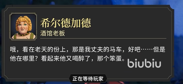 这个NPC不是直接站在某个地点,你需要先找到“破损的手推车”,然后与其互动就会触发希尔德加德与其丈夫的对话。他的名字叫做布兰特,年纪很老并且留着大胡子,是当地的抵抗军成员,在他们的交谈结束之后任务就完成了。奖励为学识之书,你可以用它在学识商店解锁更多的道具。