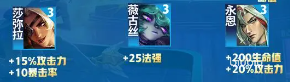 莎弥拉:增加15%攻击和10暴击;