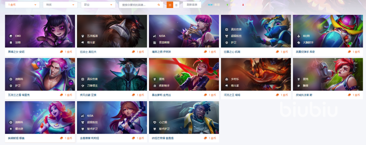 说完了刷新机制,再来根据金币的不同说说各个英雄的赛季之星效果吧!这里要提醒下各位玩家,如果网络不好的话,大家在刷新商店的时候就没办法看到正常的赛季之星,所以为了保证网络的稳定,推荐大家使用biubiu加速器。电竞级别的专线加速可以避免网络出现波动,现在参与他们的注册活动新人还能免费领取1天的会员加速服务。
