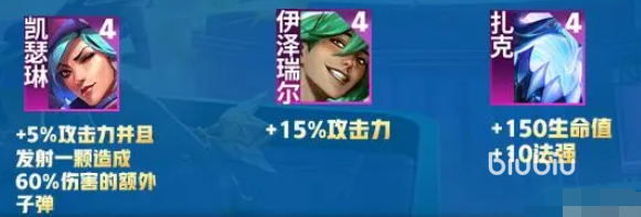 凯特琳:增加5%攻击,同时还能射出一发高伤害的子弹;